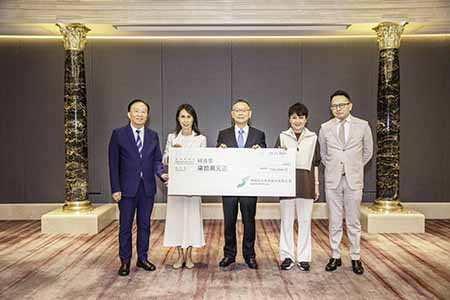 支票遞交儀式日前於澳門上葡京綜合度假村舉行,澳娛綜合常務董事何超鳳女士、董事兼員工福利諮詢委員會主席梁安琪女士將善款支票遞交同善堂,由值理會崔世平主席、蔡明威值理及林偉濠值理代表接受。