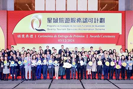 【特訊】旅遊局昨(3)日舉辦2024年度“星級旅遊服務認可計劃”餐飲及旅行社界別的頒獎典禮,嘉許本年度新參加或再次競逐的獲獎餐飲及旅行社商戶。今年獲“星級旅遊服務商戶獎”的餐飲界別共有312間,旅行社界別有44間,鼓勵澳門業界提供優質旅遊服務,共建有禮優秀旅遊目的地。