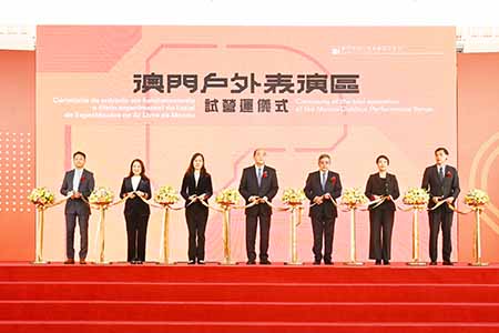 【特訊】為配合澳門“1+4”經濟適度多元發展策略,打造澳門作為“演藝之都”,特區政府建造臨時“澳門戶外表演區”,作為舉辦大型演藝活動的戶外表演場地,並在12月7日舉行試營運儀式,澳門特別行政區行政長官賀一誠、社會文化司司長歐陽瑜、運輸工務司司長羅立文、社會文化司司長辦公室主任何鈺珊、文化局局長梁惠敏、公共建設局局長林煒浩、旅遊局副局長許耀明出席主禮。