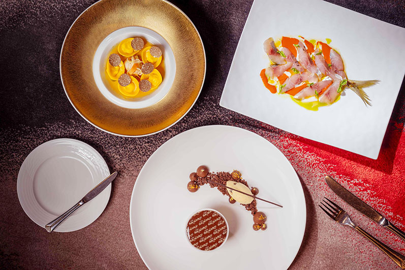 上葡京:當奧豐素 1890 精心採用多款高級時令食材,打造讓人食指大動的四道菜午膳、七道及八道菜晚膳,賓客可飽嚐以鮮美鹿肉、珍貴魚子醬、香氣撲鼻的黑、白松露,以及時令海鮮炮製的意式佳餚,更可選擇搭配侍酒師挑選的香醇餐酒,昇華味蕾享受。