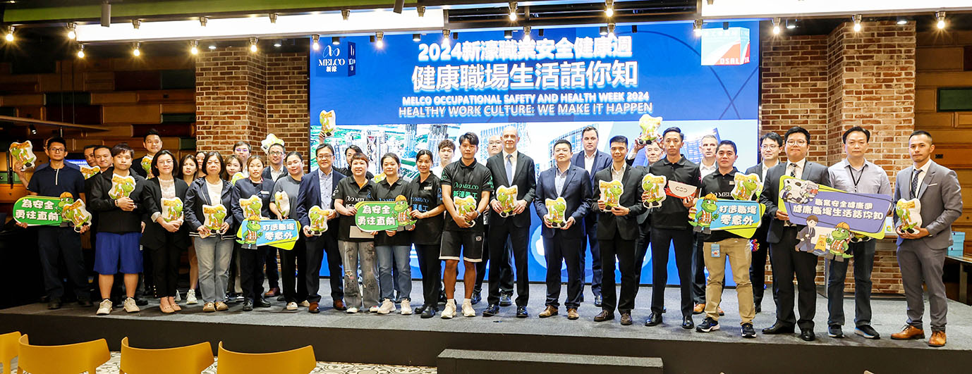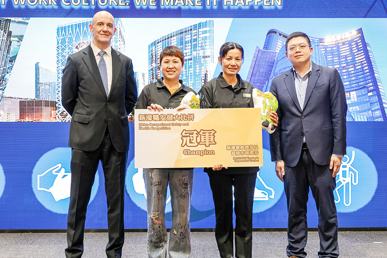 為展示公司對恪守職安健的承諾,新濠日前在新濠天地舉辦一年一度的「新濠職業安全健康週」頒獎儀式,表揚在職安健方面有傑出表現的新濠同事和團隊。活動主禮嘉賓包括勞工事務局代局長陳俊宇先生、職業安全健康廳廳長李錫樵先生、職業安全健康廳推廣訓練處代處長崔家盛先生及新濠保安部營運副總裁Toby Ryan先生。