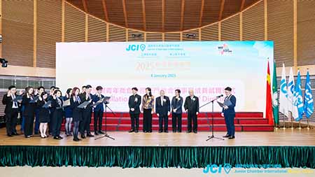 【特訊】國際青年商會中國澳門總會暨屬下兩分會汎澳青年商會及濠江青年商會之2025年度理事局成員就職典禮已於1月4日舉行。總會會長吳傲藍致辭時表示,將堅實貫徹國際青年商會的使命及願景,為青年提供發展領導才能和培育社會責任感的機會,致力促進青年作出正面改變,並會充分利用青年商會全球網絡平台,開拓青年人的國際視野。