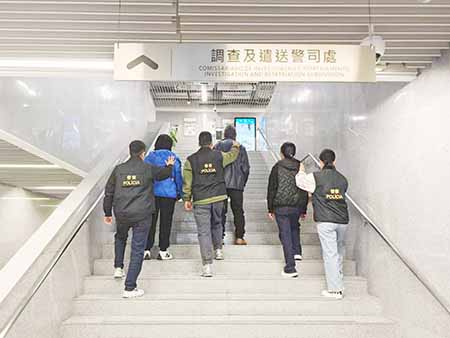 被捕的假僱主姓鄧,男,六十歲,本澳居民,退休;其妻子姓田,六十歲,本澳居民,充當「中介」角色,無業;假外僱家傭姓王,女,五十多歲。涉及「假聘用」被送交檢察院處理。