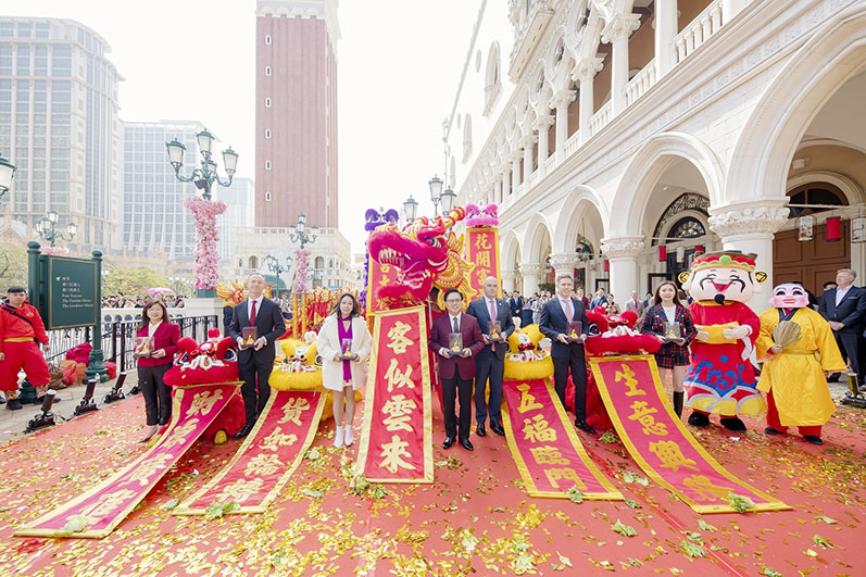 澳門金沙®、澳門百利宮®、澳門威尼斯人®、澳門倫敦人® 及澳門巴黎人®分別舉行了一連串賀歲活動,包括傳統拜神儀式、醒獅點睛,以及由六獅一龍組成的舞龍醒獅表演,並同場安排「財神」向公司及澳門送上新春祝福,冀望為新一年帶來幸運。表演吸引大批市民及旅客駐足圍觀,場面熱鬧。