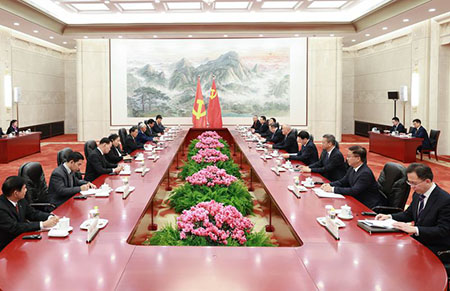 【新華社北京2月27日電】(記者董雪)2月27日,中共中央政治局常委、中央書記處書記蔡奇在北京會見由老撾人民革命黨中央政治局委員、中央書記處常務書記、國家副主席本通率領的老撾人革黨代表團。