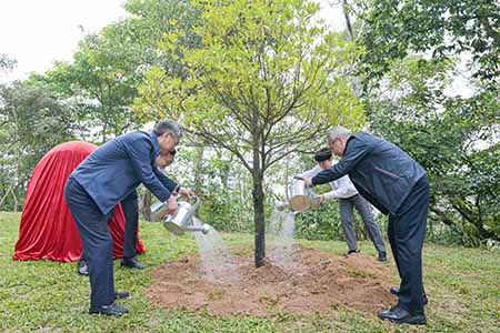 【新聞局】行政長官岑浩輝出席植樹活動並栽種中華楠幼樹,宣揚共建生態文明。