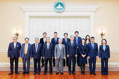 【特訊】行政長官岑浩輝(十九)日會見第十四屆全國政協常委、粵港澳大灣區企業家聯盟主席蔡冠深一行,雙方就促進粵港澳大灣區及澳門特區經濟發展交流意見。