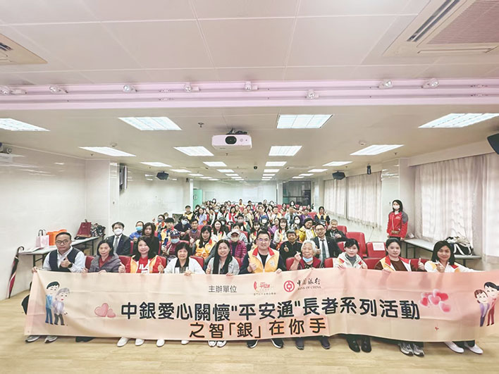 【特訊】三月二十九日,澳門中銀義工協會與澳門“平安通”呼援服務中心舉行了一場中銀愛心關懷"平安通"長者系列活動,主題為智「銀」在你手。此次活動旨在提升長者對詐騙陷阱的警覺性,並深入了解電子支付應用,以確保他們在日常生活中能夠更加安全和便捷地使用科技。當天的活動出席嘉賓包括澳門中銀義工協會理事長王金思、副理事長譚綺梅、副理事長陳思敏,以及澳門街坊會聯合總會副理事長兼社會服務辦公室總監林敏芝、“平安通”呼援服務中心經理潘嘉倫。