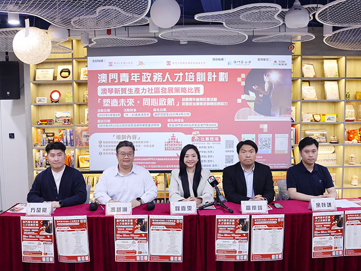【特訊】澳門工會聯合總會聯同屬下的青年委員會及政務委員會延續去年“青年政務人才培訓計劃”的成功舉辦,經過探討及調研,本年度推出全新的“澳門青年政務人才培訓計劃-澳琴新質生產力社區發展策略”比賽,旨在引導青年深入思考社會民生議題,加強對橫琴粵澳深度合作區發展現況及前景的認識,發掘區域的新質新產力,增加學員的多元政務能力。而是次計劃由澳門基金會贊助,並得到澳門廣播電視股份有限公司成為支持單位。