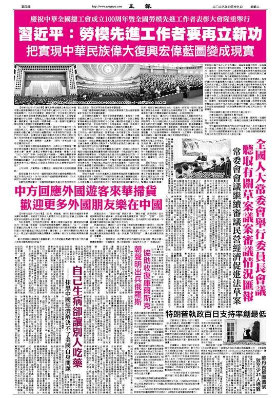 慶祝中華全國總工會成立100周年暨全國勞模先進工作者表彰大會隆重舉行 習近平:勞模先進工作者要再立新功 把實現中華民族偉大復興宏偉藍圖變成現實