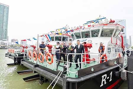 【特訊】海關2艘新救援船“R-1”及“R-2”投入運作,船上共設有4座消防水炮及4套消防泵,其中主水炮及副水炮各2座,射程最遠分別達到115米及75米。水炮可轉換為水幕噴灑模式或噴灑消防泡沫,應對多種不同類型的救援需要。海關表示,經汲取經驗,救援船設有頂推裝置,當發生火災時,可截斷並推開火勢嚴重的船隻,以防出現“火燒連環船”的情況。