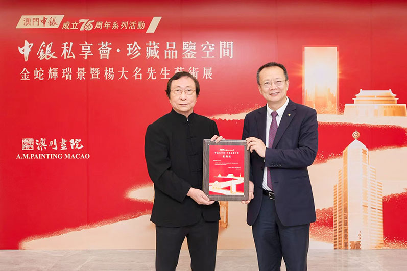 【特訊】為答謝客戶75年來的支持和厚愛,澳門中銀積極與客戶協同搭建文化交流與藝術鑒賞平台,“共建、共鑒、共享”藝術之美。4月29日下午3時在紅街市網點,“中銀私享薈∙珍藏品鑒空間”系列活動——“金蛇輝瑞景暨楊大名先生藝術展”如期舉行。活動得到國際美術金獎獲得者、澳門畫院院長楊大名的鼎力支持,本澳政界、藝術界及中銀特邀財富客戶參與。中聯辦宣傳文化部副部長白冰、立法會議員鄭安庭、文化創意産業促進廳廳長何鴻斌、文化發展基金信托委員會委員張少東、招商局招商投資及經貿拓展事務廳高級經理周鵬、霍英東基金會總幹事史濠、澳門藝術節組委會主席馬若龍、文化發展諮詢委員邢榮發、旅游發展委員會委員葉榮發、中國銀行澳門分行行長賈天兵、副行長朱强標、中國銀行(澳門)總裁陳曉平、副總裁陳榮達等出席。