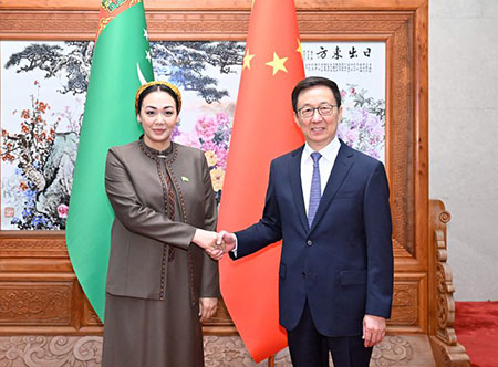 【中新社北京5月23日電】中國國家副主席韓正23日在北京會見土庫曼斯坦議長古爾馬諾娃。