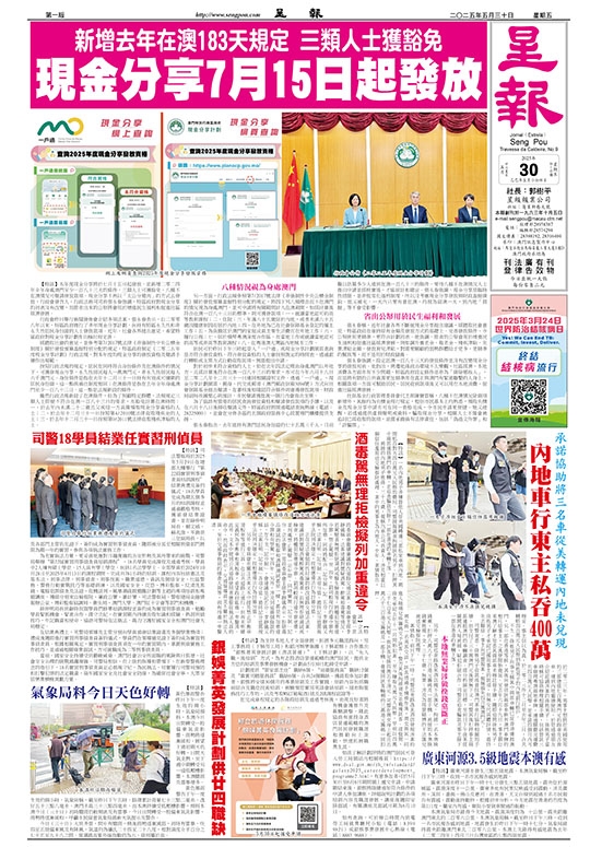 【特訊】司法警察局於2025年5月29日在總部大樓舉行“第22屆實習刑事偵查員培訓課程”結業典禮及簽約儀式,18名學員完成為期五個多月的培訓課程並通過嚴格考核,獲頒發結業證書,並在薛仲明局長,賴文威、蘇兆強、岑錦榮三位副局長,以及各部門主管的見證下,簽約成為實習刑事偵查員,隨即被分派至相關刑偵部門展開為期一年的實習,參與各項執法實務工作。