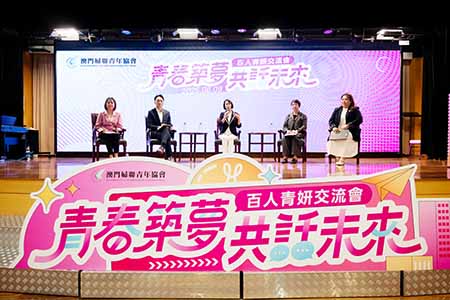 【特訊】澳門婦聯青年協會於日前成功舉辦「青春築夢,共話未來」百人青妍交流會。社會文化司司長柯嵐、教育及青年發展局局長龔志明、文化局局長梁惠敏出席,婦聯青年協會長呂綺穎、理事長歐陽月勝、監事長黃潔貞,第十二屆青年女性國際事務培訓計劃主席蔣美齡主席以及一百四十名青年女性進行真情對話交流,共商澳門青年未來發展。