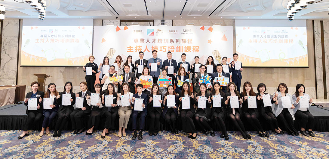 「主持人技巧培訓課程結業禮」日前於美獅美高梅多功能廳舉行,出席嘉賓包括澳門特別行政區政府勞工事務局副局長陳子慧、職業培訓廳技能鑑定處處長李敏婷;美高梅人力資源執行副總裁余婉瑩、人力資源發展及培育副總裁陳來源、人力資源發展及培育行政總監洪冰;課程導師、澳門主播達人協會會長戴顯揚、澳門蓮花衛視特邀造型顧問石宇,以及一眾美高梅團隊成員。培訓課程結合理論與實踐,逾三十名來自不同部門的團隊成員參與。期間,學員接受了十小時的培訓,內容涵蓋演講概述、主持人妝容及髮型設計、儀表技巧及主題演講四個部分。學員們經考核後在結業禮上獲頒由勞工事務局及美高梅聯合發出之「主持人技巧培訓課程」證書。