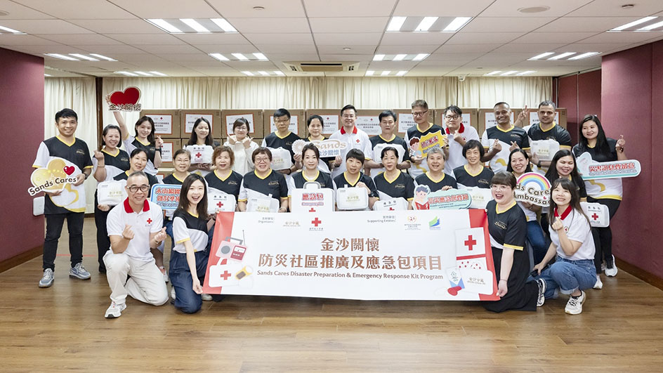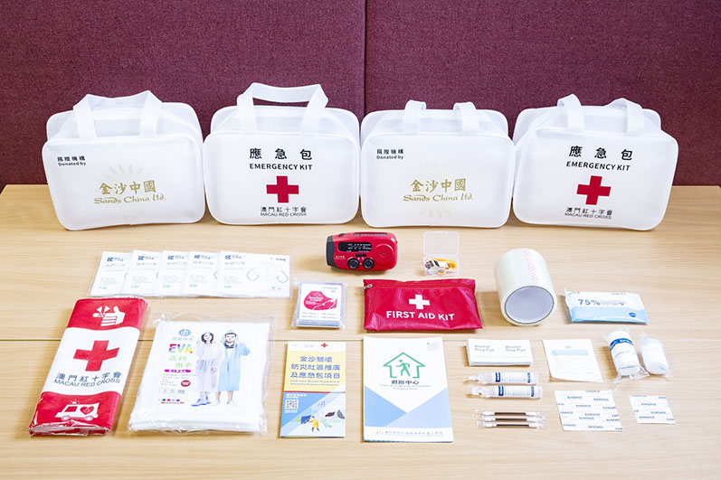 《防災應急包》38名金沙中國關懷大使於6月4日前往澳門紅十字會總部協助製作1,500份防災應急包。應急包內的物資由澳門紅十字會按過往防災救災經驗特別設計,並由金沙中國於本地採購及捐贈。每個防水應急包內含一系列防災、逃難應急及個人健康防護物品,包括急救包、消毒濕巾、哨子、雨衣、KN95口罩、毛巾、玻璃防爆膠紙,多功能便攜式太陽能及手搖發電式電筒及收音機、以及政府防災宣傳單張及防災備災安全指引小冊子;今年亦新增了應急保溫毯,以應對人體熱能大量流失的失溫症。