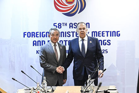 【新華社吉隆玻7月10日電】(記者王嘉偉 毛鵬飛)2025年7月10日,中共中央政治局委員、外交部長王毅在吉隆玻會見俄羅斯外長拉夫羅夫。