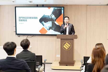 澳門銀行公會常務理事黃來志於致辭時指出,隨著澳門經濟適度多元發展加速推進及粵港澳大灣區金融合作深化,財富管理業務正迎來空前發展機遇,相關專業的高素質人才需求日益殷切,他並鼓勵學員緊貼行業發展趨勢,不斷提升專業知識和綜合能力,為澳門金融業的發展作出貢獻。