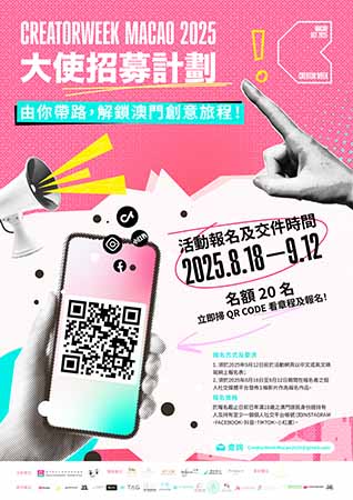 更多“CreatorWeek Macao 2025”活動詳情可瀏覽https://www.creatorweek.live。具體活動內容將陸續公佈。查詢可電郵至:CreatorWeekMacao2025@gmail.com。