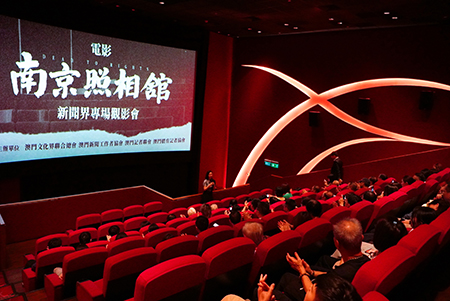【特訊】為紀念中國人民抗日戰爭暨世界反法西斯戰爭勝利八十周年,澳門文化界聯合總會聯合澳門新聞工作者協會、澳門記者聯會、澳門體育記者協會,23日下午二時半假銀河影院舉辦電影《南京照相?》專場觀影會,新聞界、文化界及青年學生近百人出席。合辦單位冀通過活動,讓參與人士銘記歷史、珍愛和平,弘揚愛國主義精神。