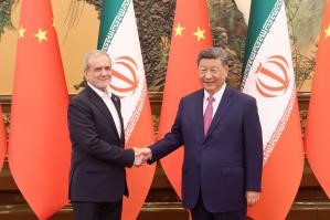 習近平指出,中伊關係經受住國際風雲變幻考驗,保持平穩健康發展。去年我們在喀山會晤後,兩國各部門積極落實雙方達成的重要共識,中伊各領域合作取得不少新成果。中方始終把發展對伊關係置於中國中東外交重要位置,願同伊方賡續友好,深化互信,加強在貿易、投資、清潔能源、互聯互通等領域合作,增進人文交往,攜手推動中伊全面戰略夥伴關係行穩致遠。中方提出全球治理倡議,願同包括伊朗在內的國際社會一道,推動構建更加公正合理的全球治理體系,攜手構建人類命運共同體。