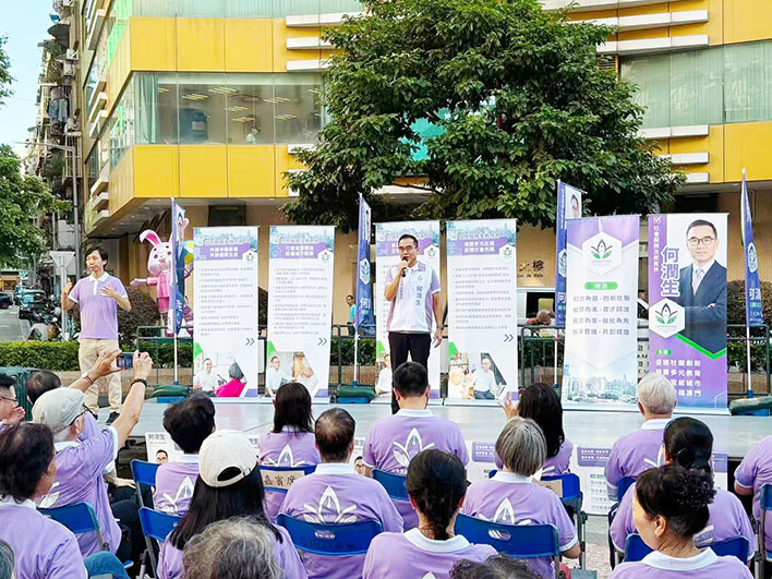 【特訊】社會服務教育促進會於9月5日下午五時在三盞燈圓形地舉行公開宣傳大會,近百人出席活動,期間候選人何潤生介紹參選理念及政綱,受託人、召集人及主席團亦分別站台並表態發言。何潤生總結時表示,將繼續與社會服務界與教育界緊密合作,期盼能夠繼續得到支持,為澳門更美好的未來貢獻力量。