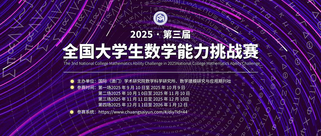 【特訊】為積極回應黨的二十大加快建設教育強國、科技強國、人才強國的要求,推動數學進階知識、綜合能力及數學研究等方面的優化和完善,助力數學教育的發展,由國際(澳門)學術研究院數學科學研究所與數學建模研究與應用期刊社聯合舉辦的2025第三屆全國大學生數學能力挑戰賽現正接受報名。