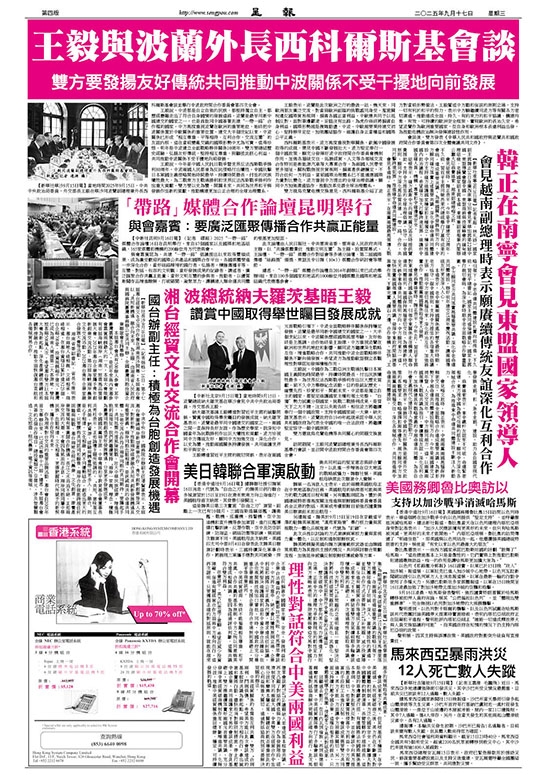 【中新社北京9月15日電】當地時間9月15日,波蘭總統納夫羅茨基在華沙會見中共中央政治局委員、外交部長王毅。