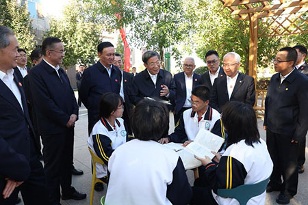 全國政協副主席、中央代表團副團長王東峰帶領五分團走進博樂市烏圖布拉格鎮介格得布拉格村,考察鄉村振興情況,並看望慰問村民。代表團還來到兵團第五師高級中學,瞭解教育援疆等情況,並與師生們親切交流。
