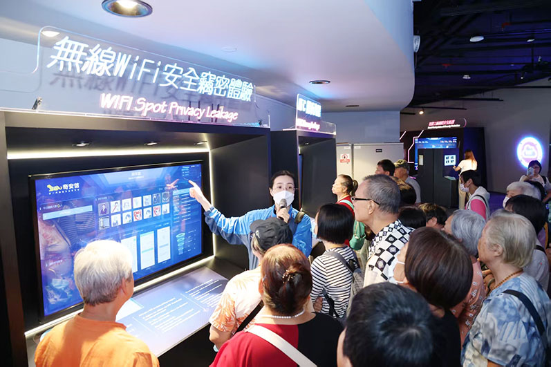 在首階段活動中,澳門科學館組織長者參與“網絡安全守護者”科普講座,並安排他們在資料科學廳親身體驗多項與網絡安全相關的互動展品,從認知與識別維度入手,幫助長者建立對AI技術的基本理解與信任。此外,中國銀行(澳門)股份有限公司派員講解數字金融服務及分享實用技巧,協助長者安心使用現代金融工具。