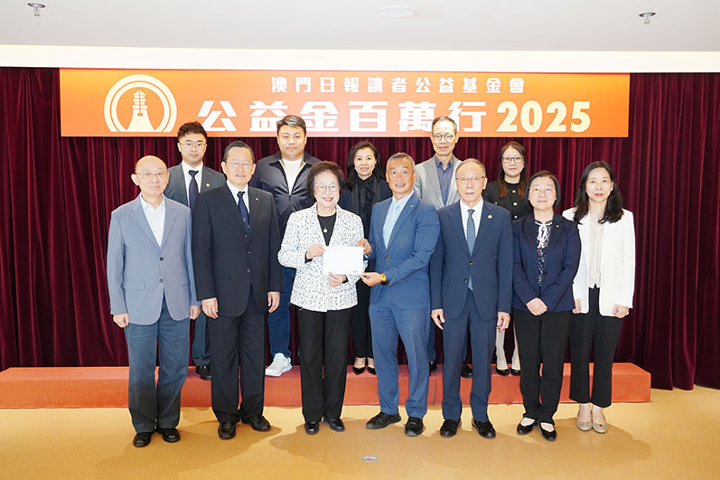 【特訊】澳門國際機場專營股份有限公司(CAM)作為一家社會企業,一直不遺餘力支持本澳各類社會慈善活動,積極參與每屆公益金百萬行。 2025年11月14日,CAM執行委員會主席陳穎雄、執行董事簡焯坤一行向澳門日報讀者公益基金會捐款澳門幣十萬元響應活動,並由澳門日報讀者公益基金會會長賀定一,副會長陸波,理事長黃國勝,常務副理事長何凱玲,副理事長李廣志,理事曹嘉銘、楊駿代表接收。