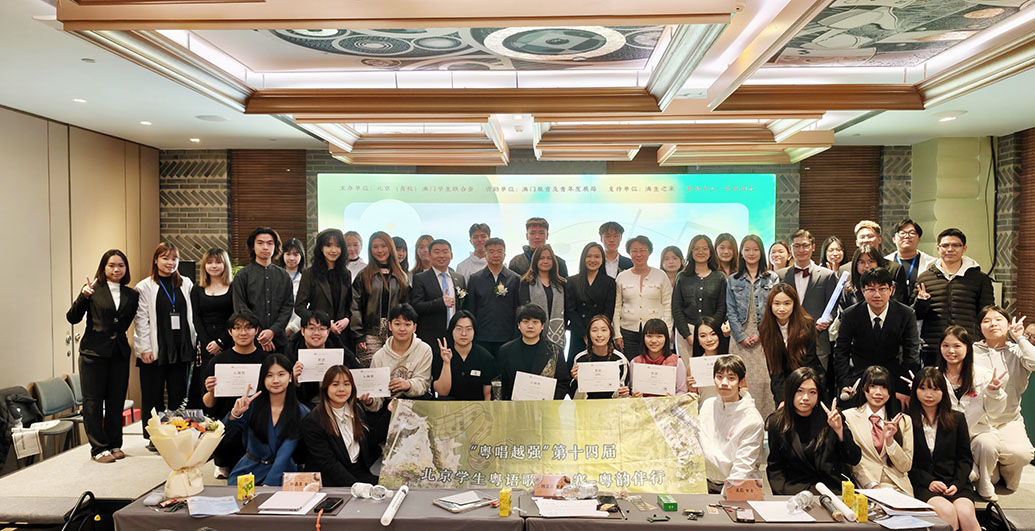 【特訊】由北京(高校)澳門學生聯合會主辦的「粵唱越強」第十四屆北京學生粵語歌唱比賽決賽,昨假北京市東直門雅辰悅居酒店舉行。活動以「粵韻伴行」為主題,旨在透過音樂增進京澳兩地青年交流,推動粵語文化在內地高校的傳承與普及,並助力澳門青年融入粵港澳大灣區發展。