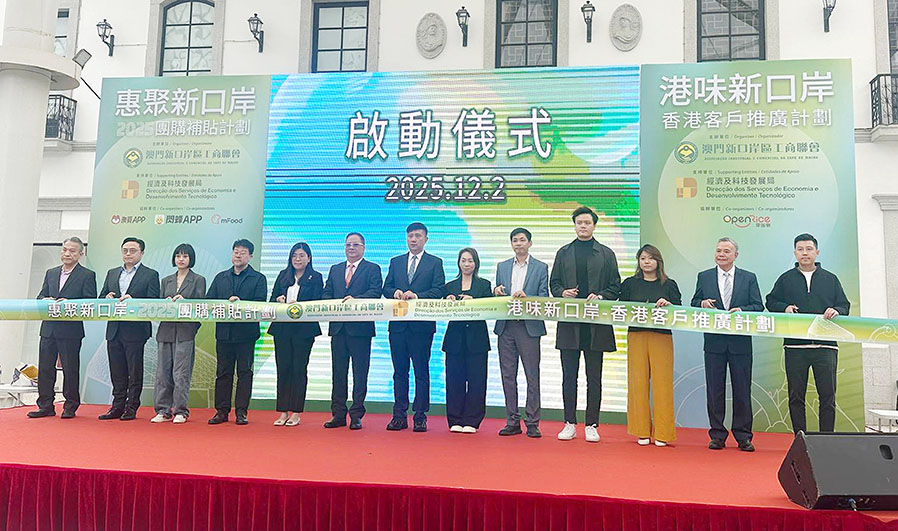 澳門新口岸區工商聯會昨午舉行「惠聚新口岸—2025團購補貼計劃」及「港味新口岸—香港客戶推廣計劃」聯合啟動儀式。兩項計劃整合線上線下平台資源,將為參與商戶提供平台宣傳推廣的全方位支援,希望提升商戶競爭力及品牌影響力,通過創新消費模式刺激區內經濟活力。兩項計劃料有二百五十間商戶參加,活動投入資金約三百萬元。