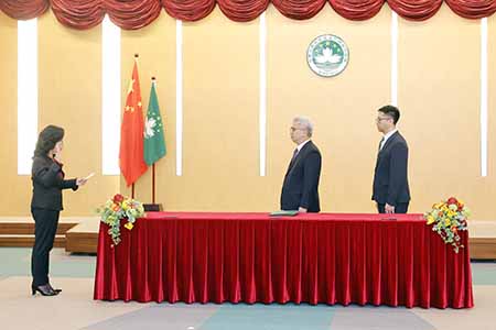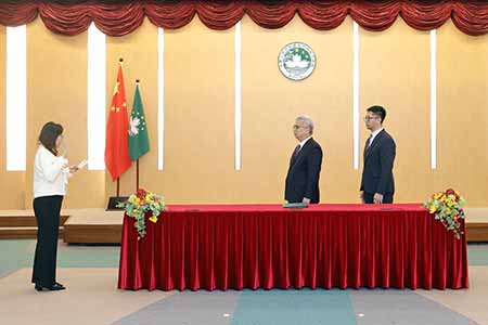 【特訊】行政法務司司長黃少澤昨(十七)日早上在政府總部多功能廳,主持身份證明局局長陳海帆和法律及司法培訓中心主任羅翩卿的就職儀式,黃司長充分肯定兩人具備豐富管理經驗與優秀領導才能,展現大局意識和執行能力,堅信兩人能帶領團隊開拓創新,全力推進公共行政改革,實現第六屆特區政府「提升特區治理效能」的施政目標。