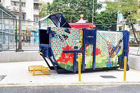 壓縮式垃圾桶具有容量大、佔用空間小、密封性強等特點,為協助物業管理公司及清潔人員更安全、便利地傾倒垃圾至壓縮式垃圾桶,市政署以路環大型屋苑附近的兩個壓縮式垃圾桶為試點,增設翻桶架,利用油壓裝置將垃圾桶升至投入口高度,令傾倒垃圾更為便捷,有助提高壓縮式垃圾桶的使用率。市政署將因應實際條件情況,逐步增設相關設備。