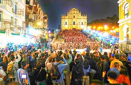 【特訊】由文化局主辦之「樂韻悠揚大三巴」音樂會於昨日聖誕夜上演。大三巴牌坊梯級及周邊聚集大量觀眾,不少市民及旅客高度評價音樂會。有旅客大讚表演精彩,認為有效提升節日氣氛及凝聚力。