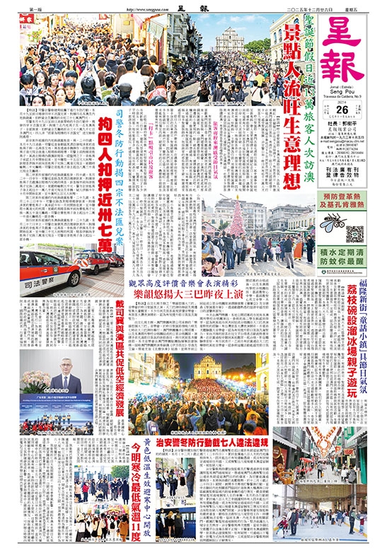 由文化局主辦、澳門樂團有限公司承辦的「樂韻悠揚大三巴」音樂會,於昨日聖誕節傍晚六時及七時在大三巴牌坊舉行,澳門樂團攜手公開招募、以及本澳兩所學校合唱團組成的公眾合唱團隊,演繹多首充滿節日氣氛的佳節曲目,與市民旅客共慶佳節。本次音樂會由澳門樂團駐團指揮葉政德執棒,屆時澳門樂團將演奏蘇佩《伊莎貝拉》序曲及艾倫・席維史崔《北極快車》組曲,並與早前公開招募的合唱成員、以及本澳兩所學校合唱團包括:嘉諾撒聖心中學、嘉諾撒聖心英文中學,共同組成公眾合唱團隊演繹韓德爾《彌賽亞》及安德森《聖誕嘉年華》,透過動聽熟悉的旋律中感受節日的溫馨與喜悅。