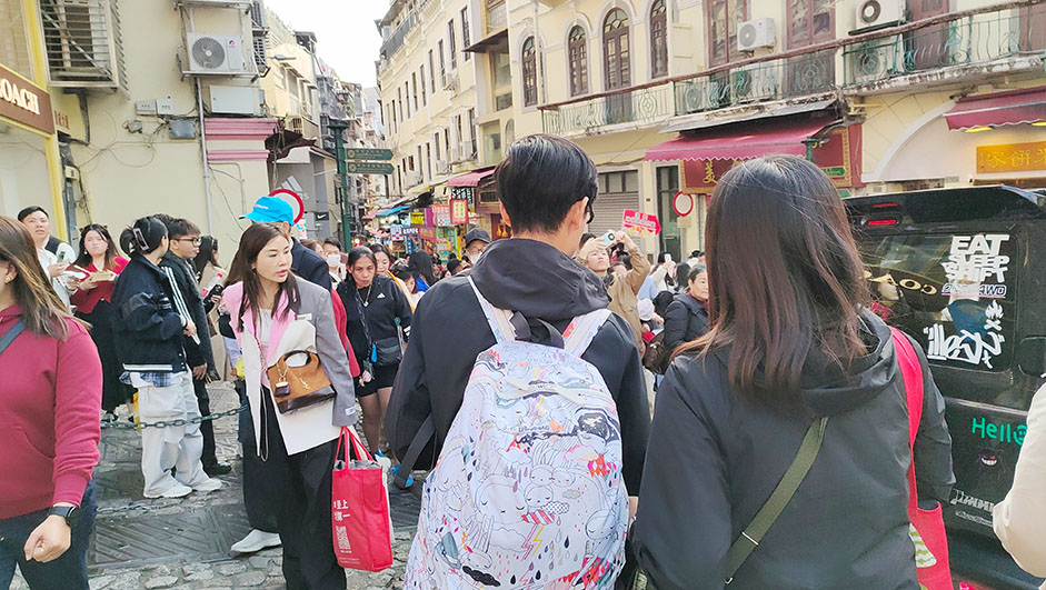 昨日為聖誕節翌日,仍有不少旅客來澳感受節日氣氛,港珠澳大橋口岸人流不斷,巴士站排起人龍。跟團來澳的廣西旅客李先生表示,特意請假來澳感受聖誕氣氛,主要遊覽本澳著名景點;本地導遊李小姐則稱,聖誕長假旅遊團較平日多,但同比二零二四年減少,團客年齡偏大,相信現時年輕人更多選擇自由行。