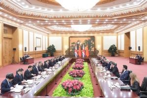 【中新社北京1月29日電】1月29日下午,中國國務院總理李強在北京人民大會堂同來華進行正式訪問的英國首相斯塔默舉行會談。