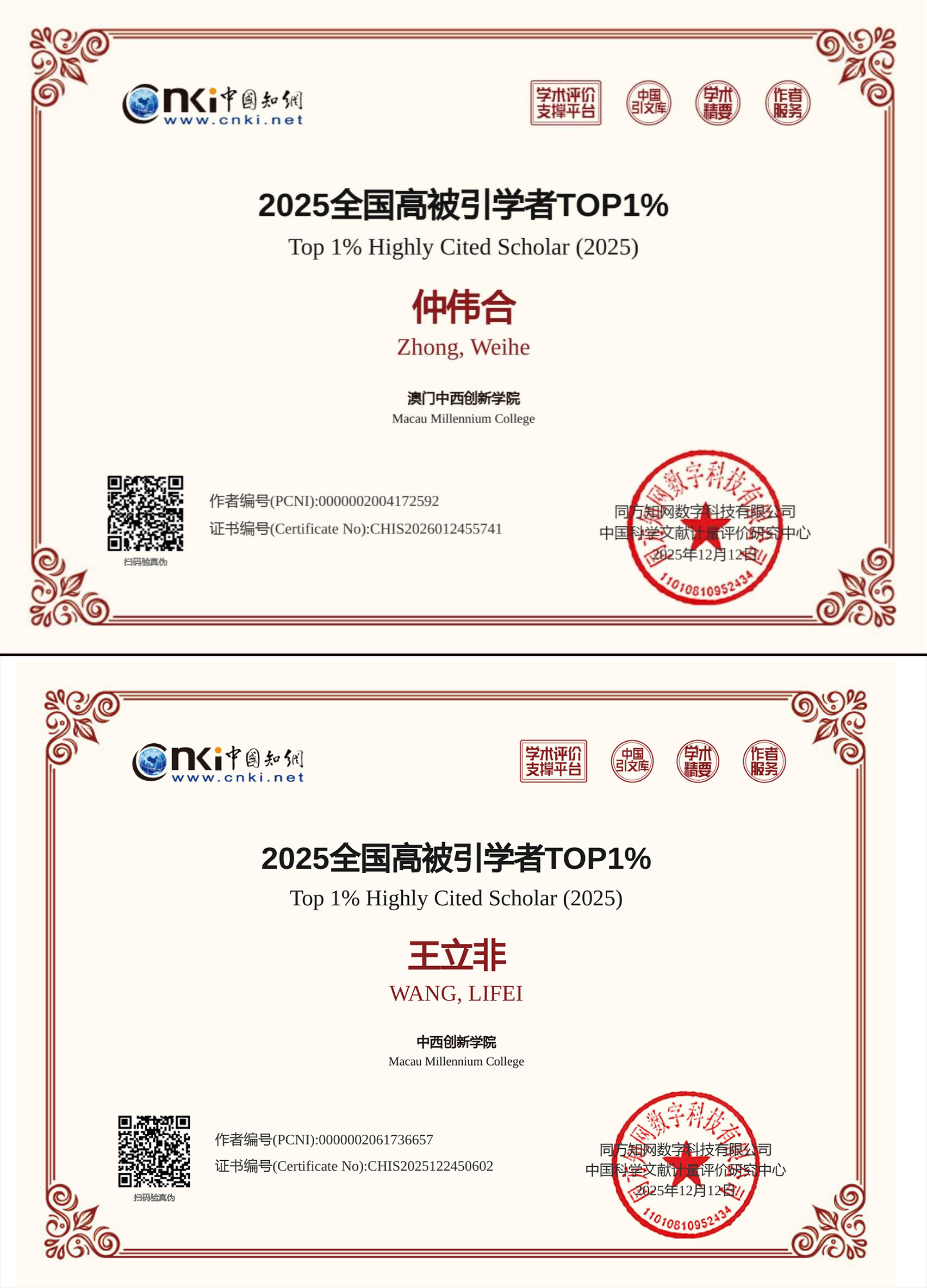 本次入選外國語言文學學科全國高被引學者前1%的學者中,澳門地區共有3位,中西創新學院占兩席,進一步彰顯了學院在語言學及相關研究領域的領先地位。