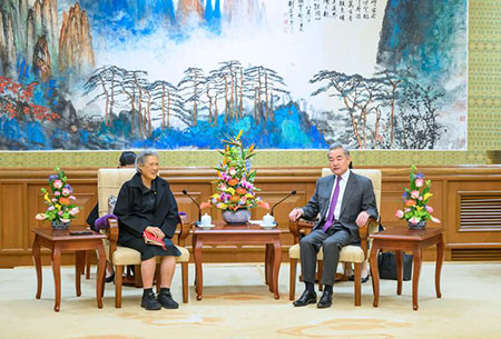 王毅說,公主殿下45年來訪華57次,足跡踏遍中國大江南北,是中國改革開放進程的親歷者、中國式現代化的見證人,也是促進中泰友好的實幹家。你是中國人民的老朋友、好朋友,為深化中泰友好傾注了大量心血,作出了突出貢獻,習近平主席專門為你頒發“友誼勳章”。今年是中國“十五五”開局之年,中方願同泰方一道,以兩國元首重要共識為根本遵循,弘揚中泰傳統友好,在殿下關心的高科技、教育、民生等領域與泰方加強合作,不斷播撒友好的種子,推動中泰命運共同體建設開花結果,造福人民。