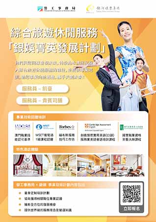 【特訊】勞工事務局(下稱“勞工局”)與銀河娛樂集團(下稱“銀娛”)合作推出“銀娛菁英發展計劃(酒店營運)”(下稱“計劃”),以“先入職、後培訓”方式,協助本澳居民提升專業技能與促進其職業生涯向上流動,該計劃由今(10)日起接受網上申請。
