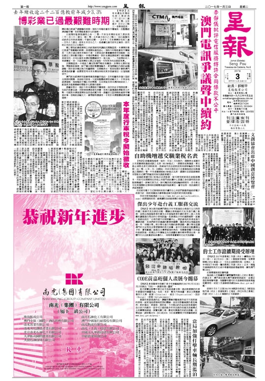 【特訊】按職業稅規章,每年一月至二月份期內,商號東主須遞交上年度職業稅僱員或散工名表(M3/M4格式),商號有或無僱員,東主都必須將名表交到財政局。為減省市民往返財政局同排隊輪候交表時間,由二零一七年一月一日開始,市民可將其名下在營業稅登記但無僱員之商號的二零一六年度職業稅M3/M4格式名表,選擇於自助服務機使用智能卡式澳門特區居民身份證直接遞交。