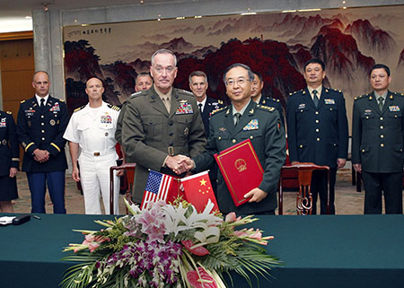 雙方還就台灣、南海、朝核等共同關心的問題交換了意見,並共同簽署了《中美兩軍聯合參謀部對話機制框架文件》。