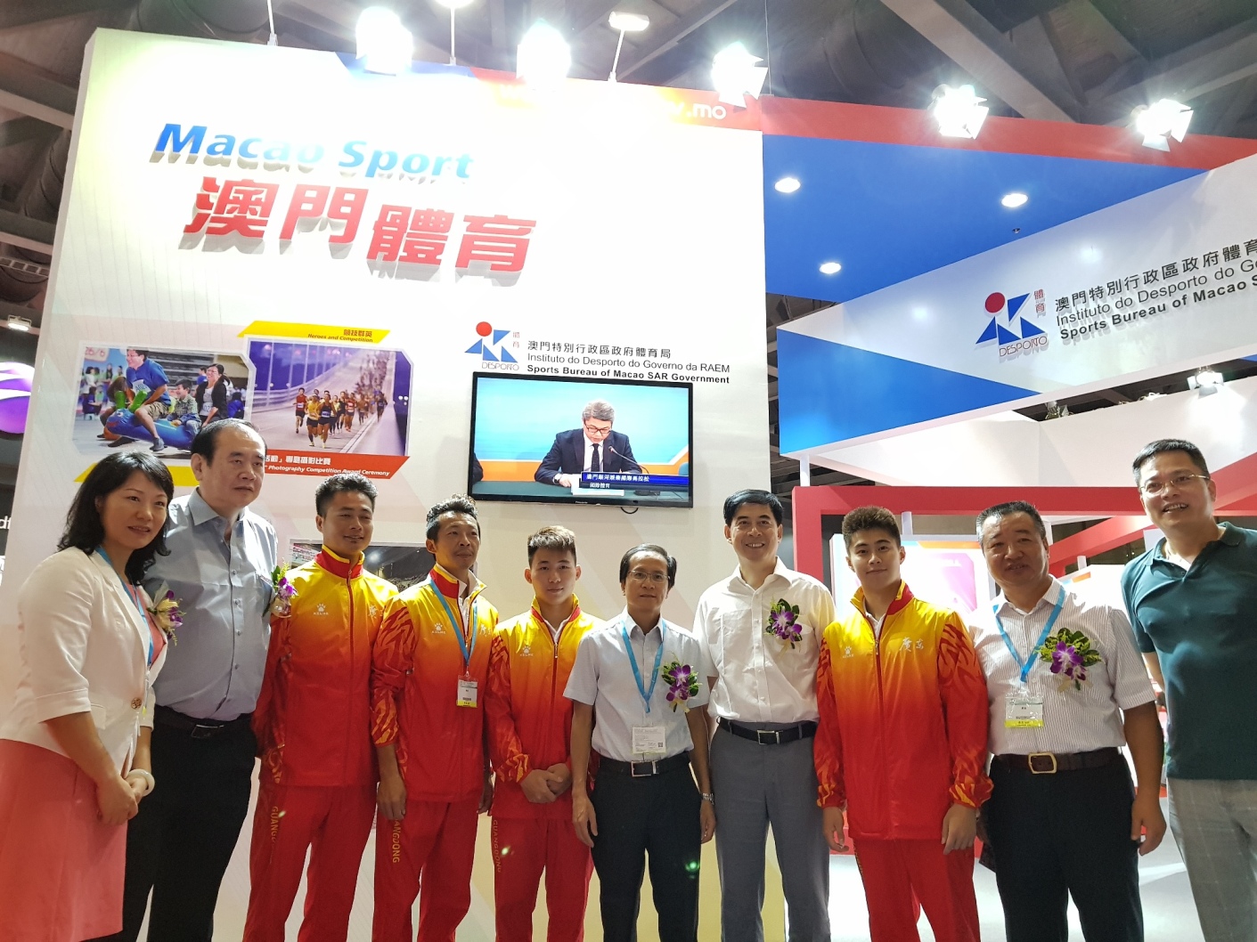 體育局在博覽會上亦設有攤位宣傳推廣澳門的體育事業情況,展出本澳所舉辦之各項大型國際體育活動、大眾康體活動、運動場館及澳門介紹等資料,吸引眾多參觀者駐足瞭解及索取宣傳單張,現場更設有籃球遊戲,以互動形式推廣體育運動,深受參觀者歡迎。