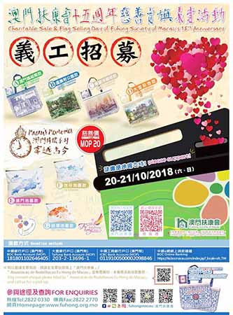 澳門扶康會成立至今已有十五年,因有著社會大眾的支持及愛心灌溉,使本會的服務多元化發展,惠及更多殘疾人士。今年本會一年一度的慈善賣旗日將於十月二十及廿一日(六、日)進行,義賣收益將用作慈善用途和開拓更多殘疾人士的多元服務發展。今年的賣旗義賣活動將會以「穿越古今」為主題,並推出一系列充滿澳門情懷的殘疾人士畫作環保袋作為義賣物,希望透過藝術創作,讓殘疾人士表達自身及抒發情緒,享受當中的愉悅和滿足感,社會大眾對義賣物的購買等於支持殘疾人士的藝術發展。