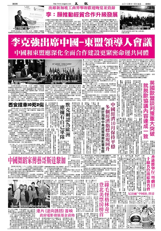 出席新加坡工商界舉辦歡迎晚宴並致辭 李:願推動經貿合作升級發展