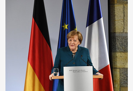 默克爾表示,德法兩國要起到引領歐洲的作用,倡導多邊主義和歐洲的法治。她還希望新合作條約能够進一步推進歐洲一體化進程。