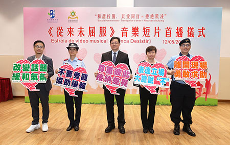 教育暨青年局一直非常重視學生的全人發展,以“預防為先、教育為重”的原則,持續透過正規教育課程、餘暇活動、學生輔導服務、德育工作、家校合作、跨部門協作等方式積極開展全方位的教育工作,培養學生正向的價值觀和生活技能,以及提供發展潛能的平台。此外,於2018年開始設立專責工作小組,提升學生的幸福感,透過政策措施為學生建立正面和健康的身心成長環境,營造和諧校園。為加強推動和諧校園的重要訊息,教青局與治安警察局攜手製作了“和諧校園.以愛同行 - 拒絶欺凌”《從來未屈服》音樂短片,並安排該短片於5月12日舉行首播儀式,教青局局長老柏生、副局長梁慧琪、治安警察局副局長劉運嫦、學校師生代表、學生輔導服務機構及社團代表、音樂短片製作團隊成員等逾二百人出席了首播儀式,場面溫馨熱閙。教青局期望透過短片向公眾宣導共建和諧的校園和社區是每一個人的責任。歡迎市民於教青局和諧校園網頁瀏覽及下載該音樂短片。(https://portal.dsej.gov.mo/webdsejspace/site/harmony/index.jsp)